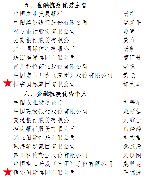 与此同时,在《2020年度结算业务和集中清算业务优秀主管和优秀个人》评选中,扑克之星集团资本运营总裁许大座荣获“金融抗疫优秀主管”,资本运营投资总裁助理王锦波荣获“金融抗疫优秀个人”。